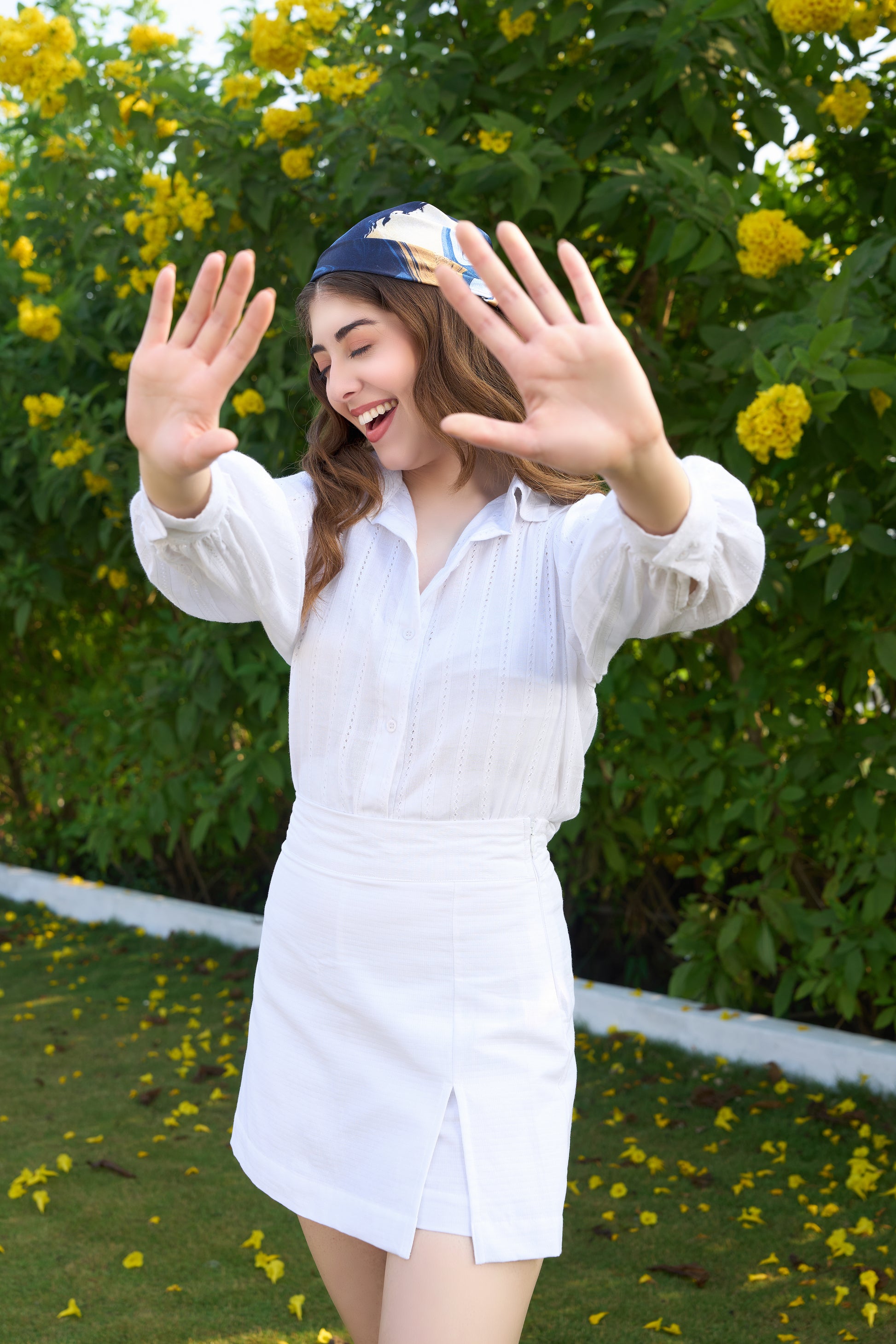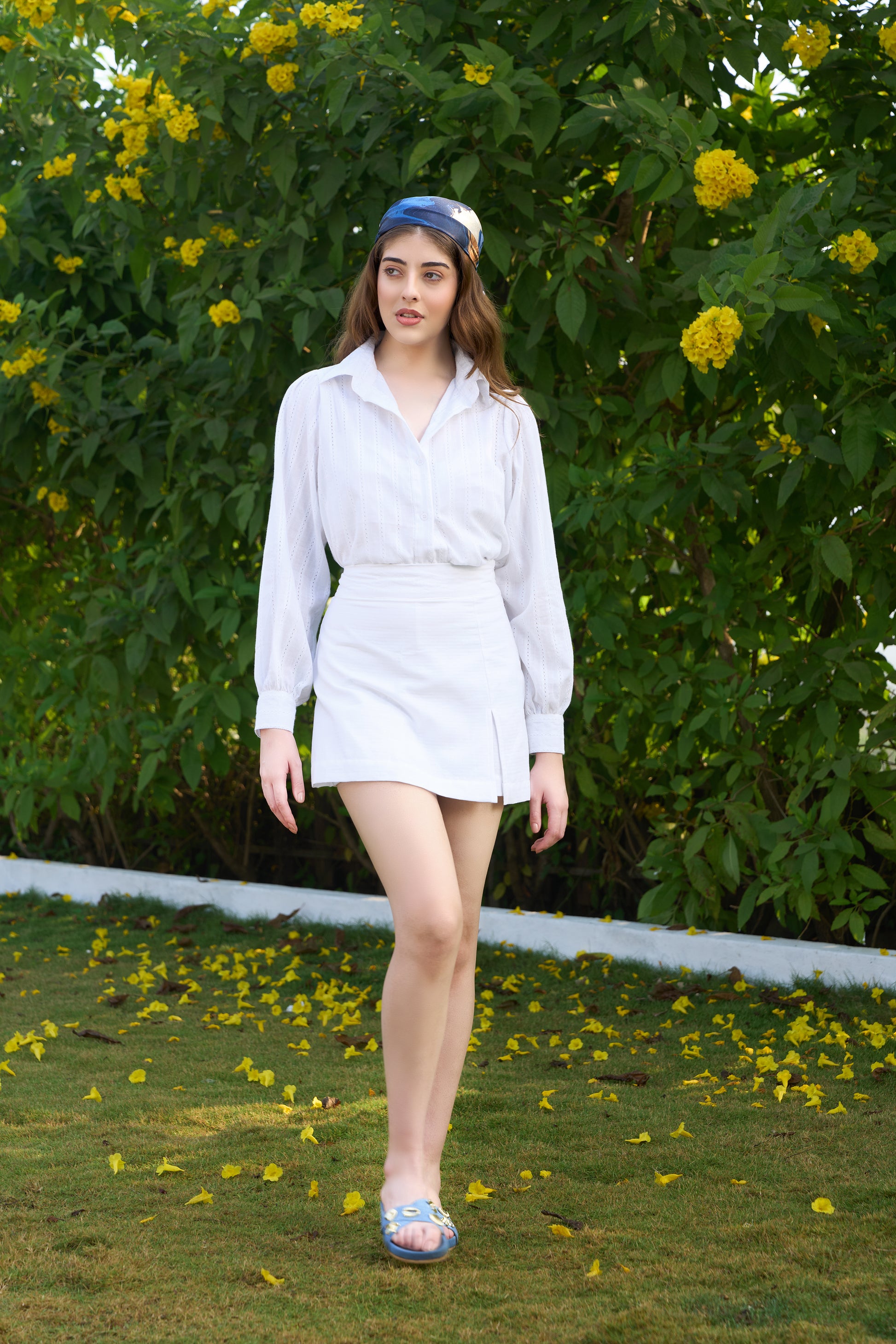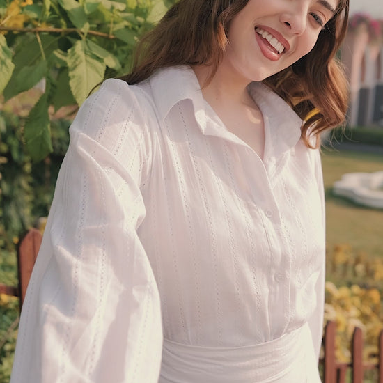 The Tulum Set is a fresh, easy co-ord featuring a detailed white shirt paired with matching skorts, designed for relaxed summer dressing with a polished finish. Crafted in lightweight, breathable fabric, this set feels comfortable while maintaining a clean, structured silhouette.